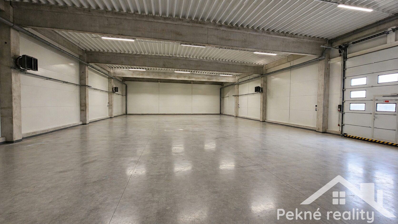 K priestorom sú dispozícii aj dve skladové haly s rozlohou 416m2 a 358m2, vybavené elektrickými sekčnými bránami s výškou 4,1m, a sú vykurované. Výška skladov je 6m. Skladové haly majú vlastné meranie tepla a elektrickej energie.