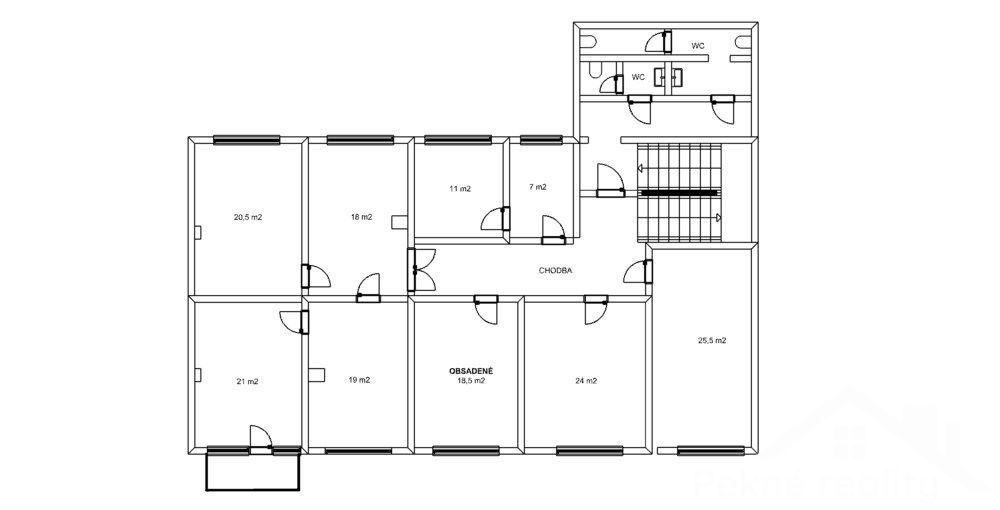 K dispozícii je 9 kancelárií, ktoré sa nachádzajú na 1. nadzemnom podlaží s rôznymi výmerami od 7m2 do 26m2.